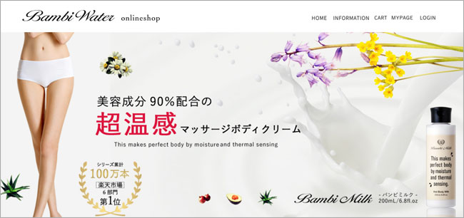 バンビミルクは足痩せクリームとしてダイエット特集でも紹介されるほどの実力を持ち、通販や店頭販売の実績も高い売上げを出したことから、スリミングジェル1を獲得しています。